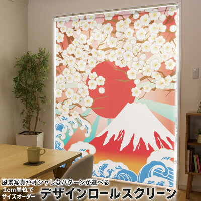 1cm単位サイズオーダー ロールスクリーン ロールカーテン オーダーメイド タチカワ 日本製 間仕切り カーテン 採光 非遮光 目隠し UVカット カーテンレール チェーン式 プル式 005475 ユニーク 和風 和柄 富士山