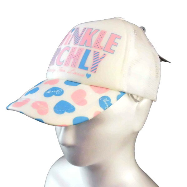涼しいメッシュキャップ夏の必需品! 前面にはプリントのデザイン、風などで 飛ばされないようにゴム付きのキャップです。
