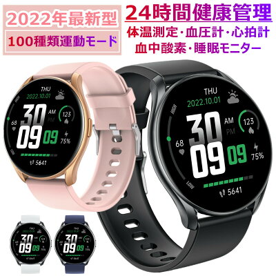 【2022年最新型】スマートウォッチ 丸型 皮膚温変動測定 IP68防水 心拍計 血圧計 歩数計 血中酸素健康管理 活動量計 歩数計 着信通知 天気予報 smart watch 着信通知 睡眠モニター 日本語説明書 腕時計 スポーツウォッチ 100種類運動モード レディース メンズ 多言語 iOS/Android対応 ※本製品はスポーツ用品、ウェルネス機器であり、一般的な健康維持のみを目的としたものであり、医療目的で使用したり、判断したるするための者ではありません。