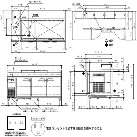 商品の仕様●有効内容積:冷蔵庫543L/ネタケース62L●外形寸法:1800×750×1020mm●製品質量:125kg●省エネ基準達成率:トップランナー対象外機器●電源仕様:単相100V●冷却時消費電力(50/60Hz):230W/245W●霜取り時消費電力(50/60Hz):406W/419W●冷媒(冷蔵室):R134a●冷媒封入量(g):230●受注生産品となりますので、お届けまでにお時間がかかります。