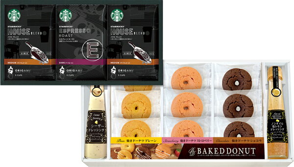 ■商品情報■▼セット内容スターバックス オリガミ?(ハウスブレンド(5袋×2)エスプレッソロースト(5袋))シーザーサラダドレッシングノンオイル塩レモンドレッシング(各120ml)×各1ベイクドドーナツ(プレーンストロベリーショコラ)×各3▼化粧箱サイズ215×458×141mm▼重量2kg▼賞味期限常温6ヶ月▼アレルゲン卵・乳・小麦▼商品説明スターバックスの香高い珈琲を手軽に楽しめるドリップタイプの「オリガミ」のセットを焼き菓子と共に楽しめます。