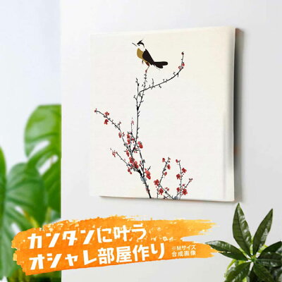 梅の花と鶯の絵 アートパネル ファブリックパネル 壁掛け 絵画 インテリア カフェ サロン 内装用 壁アート 鳥 梅 北欧 ノルディック ナチュラル リラックス スパ 教室 飾る 装飾 贈り物 ギフト 心地良い