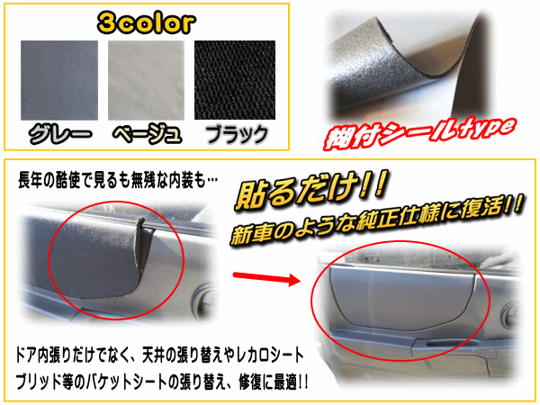 (大サイズの他カラーはこちらからお買い求め頂けます)ステッカー感覚でルーフ、トランクルーム、インパネ、オーディオコンソール等はもちろん、自動車の内装のみならず、お部屋のインテリアファブリックやウォールステッカー、壁紙としても!【必読】※色/伸び/質感に関する質問が多々御座いますがモニター環境によって色味が異なって見えたり、思っていた色味と違う等の事態が無いよう、不安な方は購入前にサンプルセットをご購入下さい。