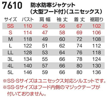 防寒作業服 バートル 防水防寒ジャケット(大型フード付) 7610 SS〜LL 7610シリーズ