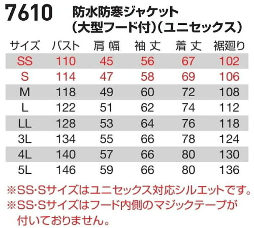 コーディネート商品(※下記画像をクリックすると各商品にジャンプします) 7610 防水防寒ジャケット(大型フード付)(ユニセックス) 7612 防水防寒パンツ(ユニセックス) 7610 防水防寒ジャケット(大型フード付)(ユニセックス) & 7612 防水防寒パンツ(ユニセックス)