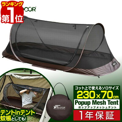 【楽天1位】テント インナーテント 一人用 ソロ 70x230 軽量 カンガルースタイル 蚊帳 メッシュ ワンタッチ ポップアップテント 自立式 キャンプ シェルター テントinシェルター インナーテントのみ ポップアップメッシュテント FIELDOOR 1年保証 ★[送料無料]