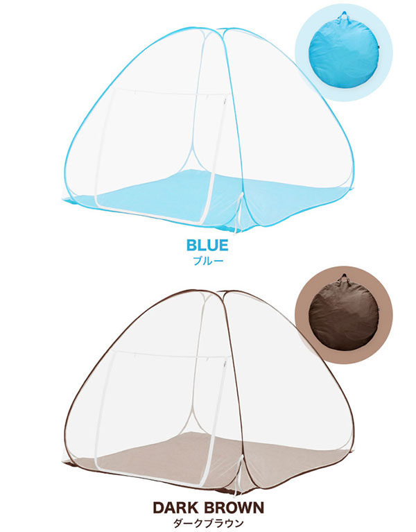 お問合せはこちら ※[店舗管理用 URL]a11914※[品番]【ブルー:a11914】【ダークブラウン:a14347】 設置も収納も簡単なワンタッチ蚊帳高さ160cm、全面メッシュで底面付きタイプの超大判サイズの蚊帳。