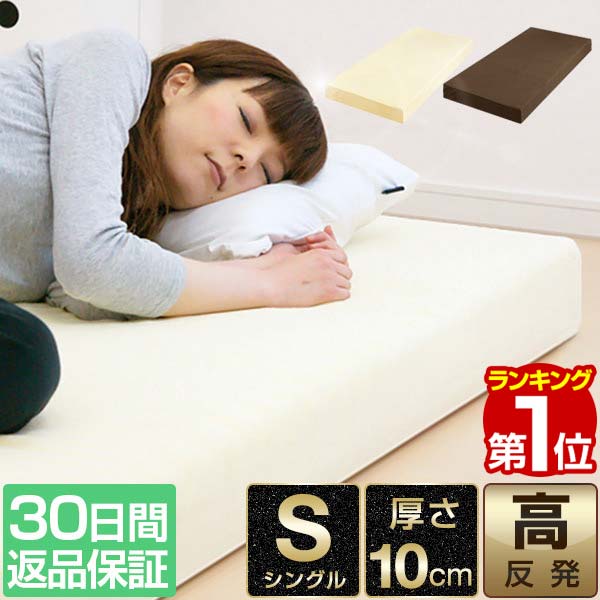 身体をしっかり支え、理想の寝姿勢をキープ!弾性の高いウレタンフォームで身体をサポート! 高反発マットレス(密度30D/硬さ200N) 10cm シングルサイズ [2カラー] 商 品 詳 細 サイズ (約)195cm×97cm×10cm シングルサイズ 重量 (約)6.6kg 材質 マットレス本体 : 高反発ウレタン(密度30kg/m3) カバー : ポリエステル100% 硬さ 200ニュートン カラー ・クリーミーホワイト ・ブラウン 特記事項 ※圧縮梱包されたままの状態で長期間保管した場合、マットレスが復元できなくなってしまいます。