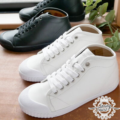 【あす楽】スプリングコート SPRING COURT レディース スニーカー B2 ナッパ レザー ミッドカット カジュアルシューズ 靴 紐靴 B2S-V5 ブラック/ブラック ホワイト 【送料無料】 evid